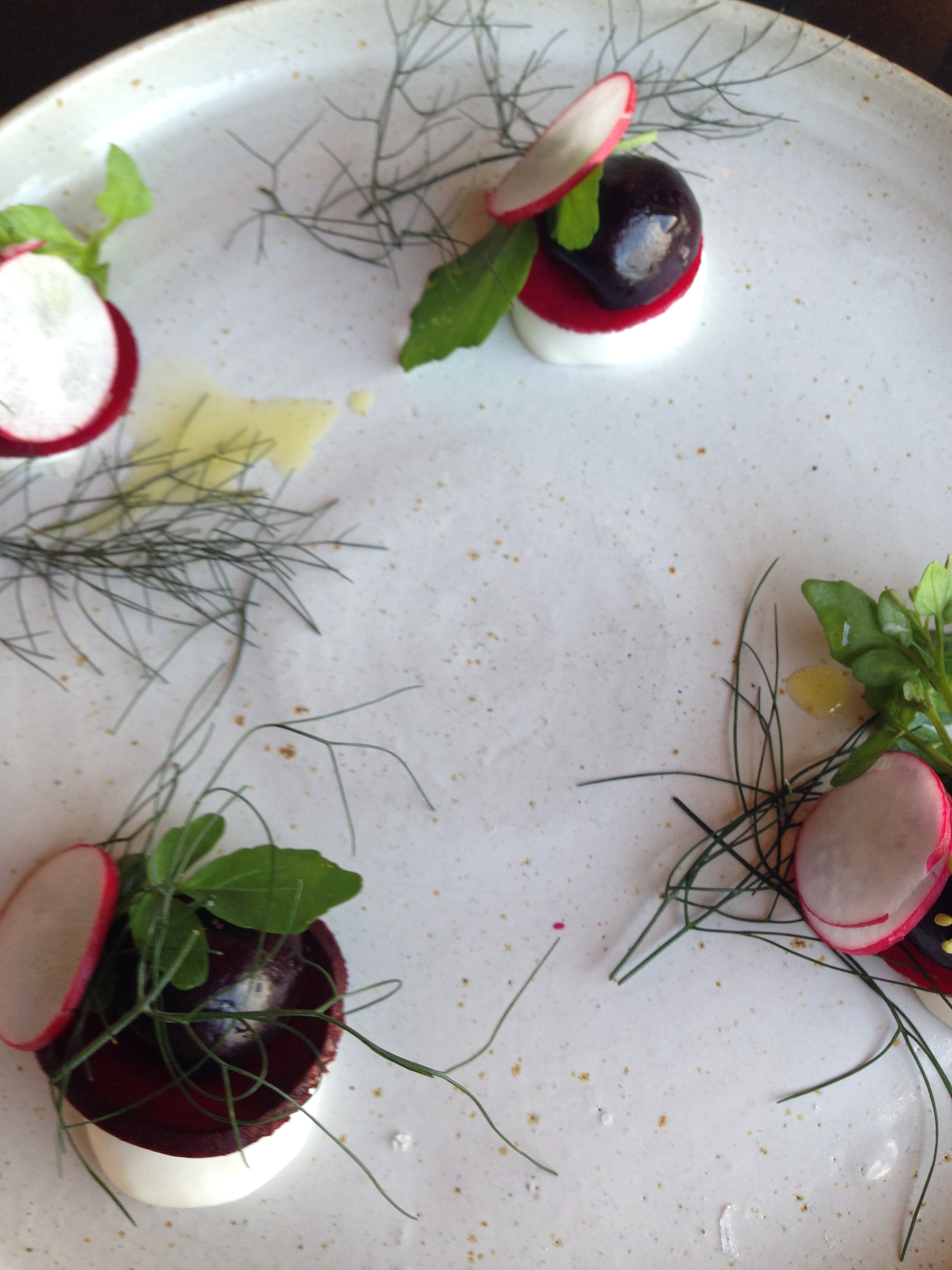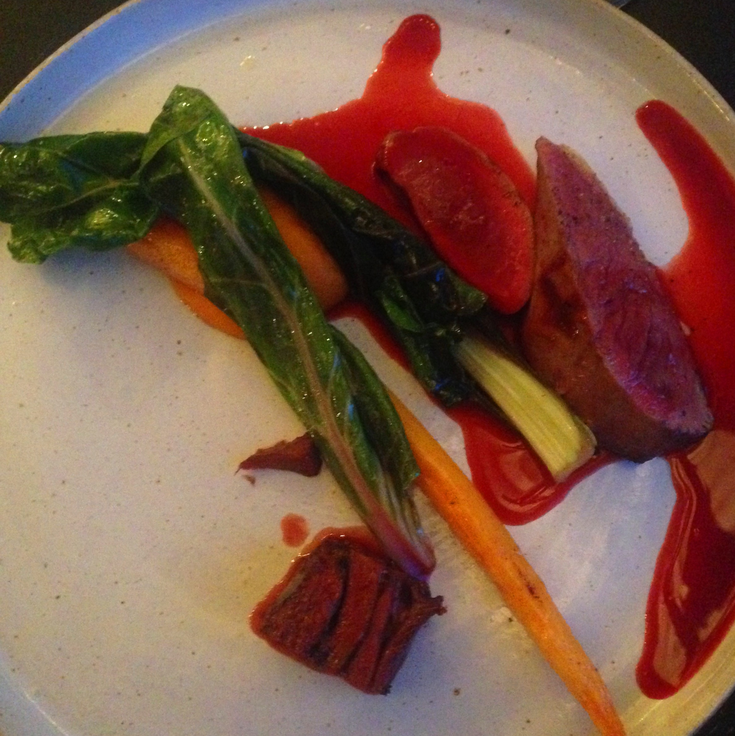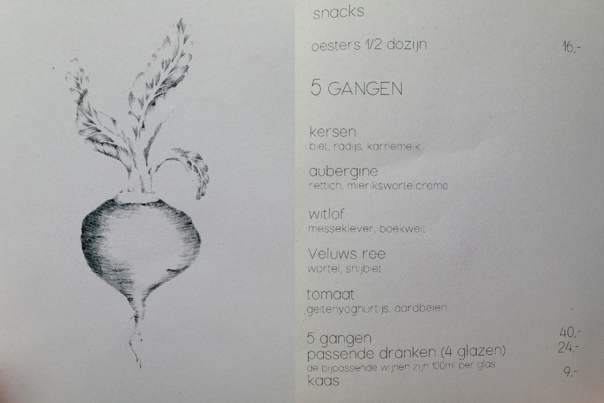 Het restaurant biedt de keuze tussen een 5 gangen (€40,00) en 7 gangen menu (€55,00). Wij gingen voor de 5 gangen met een bijpassend wijnarrangement (€24,00) en uiteraard KAAS (€9,00)! De gerechten waren stuk voor stuk bijzonder door de combinatie van ingrediënten – zoals geitenyoghurtijs met aardbeien en.. zongedroogde en verse tomaat. Iedere keer verscheen er weer een klein kunstwerkje op ons bord! Van de organische wijnen waren we allemaal iets minder gecharmeerd, maar wellicht is dat een kwestie van wennen!