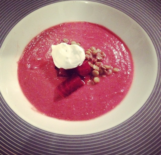 Oké, ik geef het toe. Bietensoep klinkt misschien niet direct lekker… Maar door de toevoeging van zoetzure bietjes is deze soep heel bijzonder! Ik serveer hem als voorgerecht als ik mensen te eten krijg, want het is eens een keer iets anders.