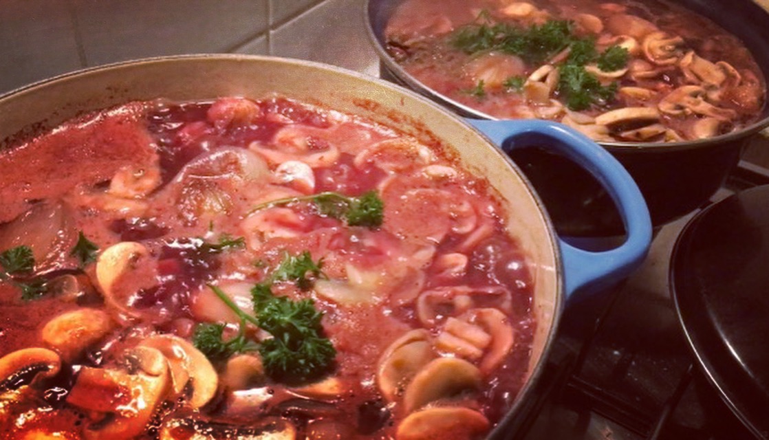 Geroosterde paprikasoep met Griekse yoghurt en olijven