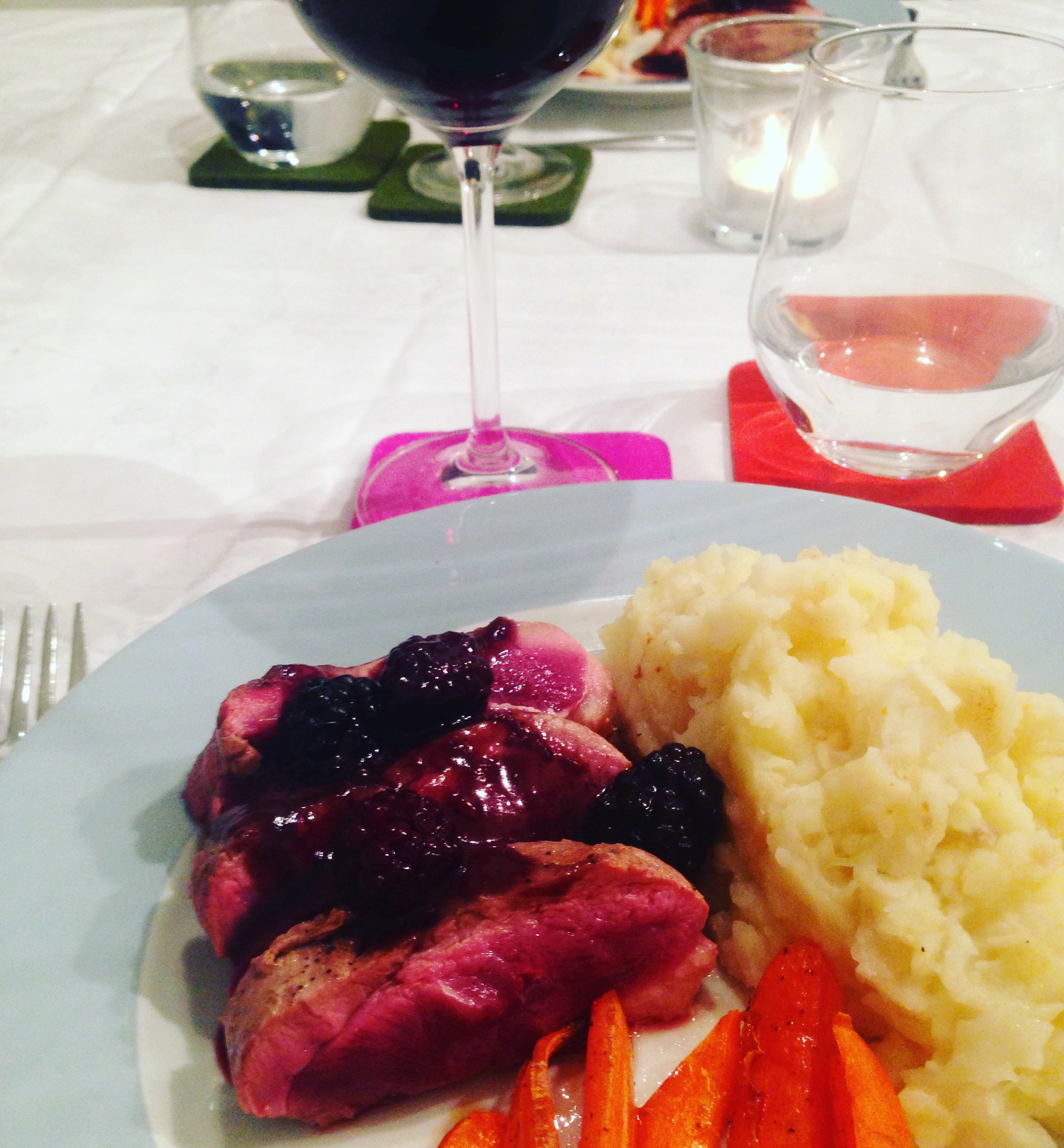 Dit vond ik een spannend gerecht om te maken, want ik ben nu eenmaal niet zo van het vlees bereiden. De eendenborsten waren van de Lidl (vriezer) en smaakten heerlijk! Als je dit recept volgt, wordt je eendenborst vrij rood. Ik houd daarvan, maar als je ‘m iets meer doorbakken wilt, zou ik 4-5 minuten in plaats van 2 minuten bakken. Lekker met een goede rode wijn, die ook weer in de saus verwerkt zit!