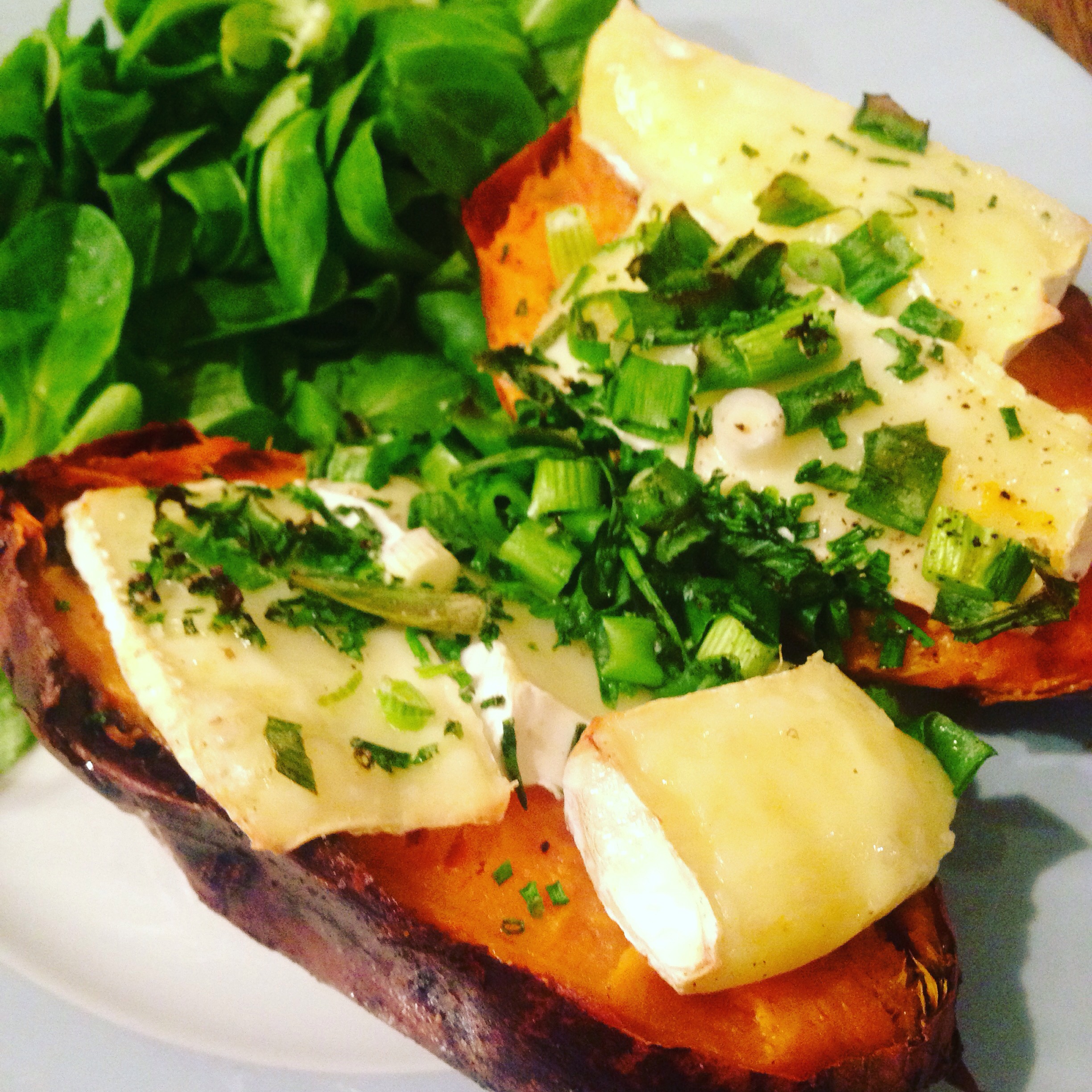 Très simple et très delicieux, deze gepofte zoete aardappel met brie. Ideaal als je geen zin hebt om te koken (ik noem dit recept namelijk eigenlijk geen koken meer), maar toch wilt smullen.