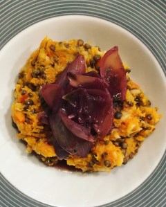 Knolselderijfrietjes met linzen, hazelnoten en munt