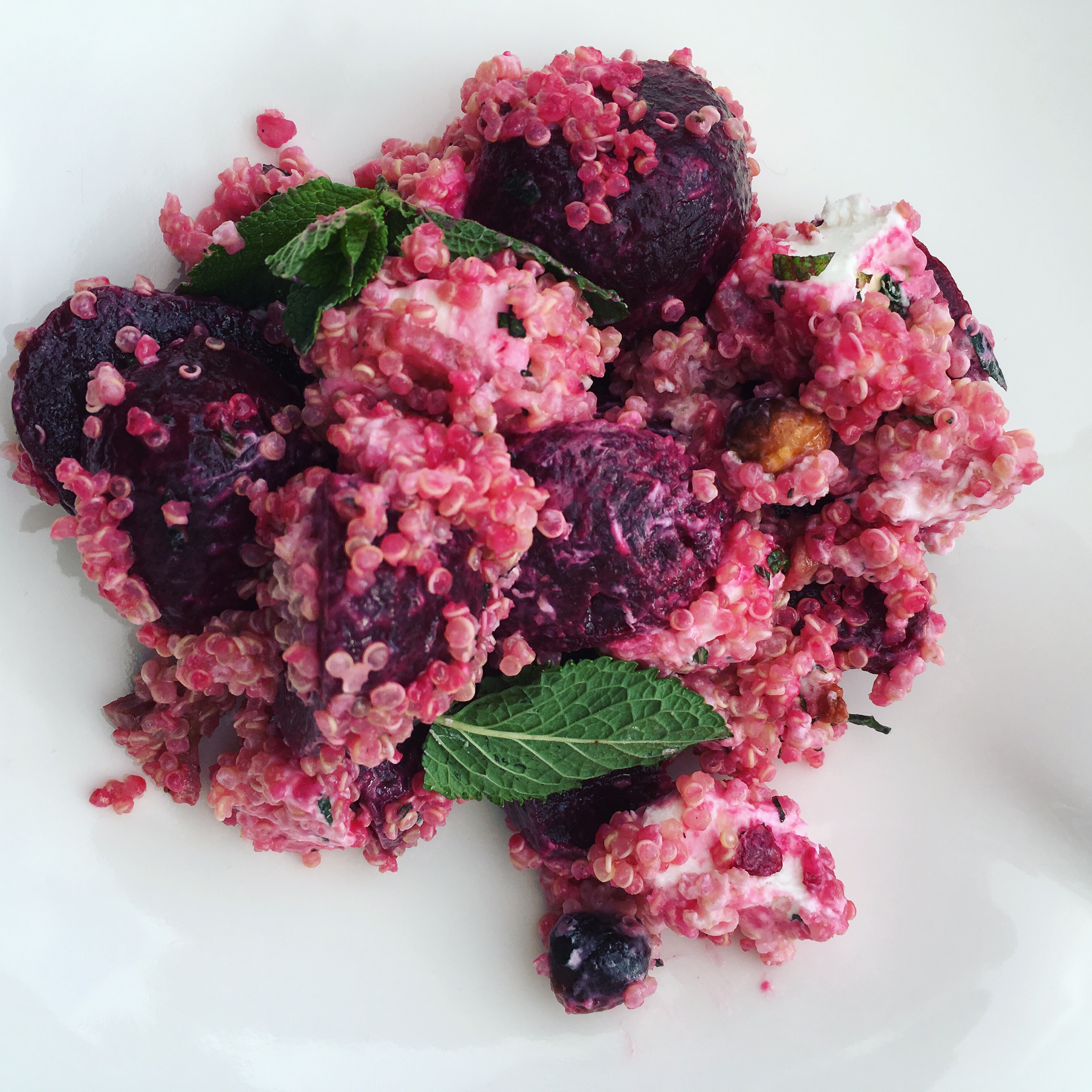Roze quinoa met geroosterde biet en sjalot