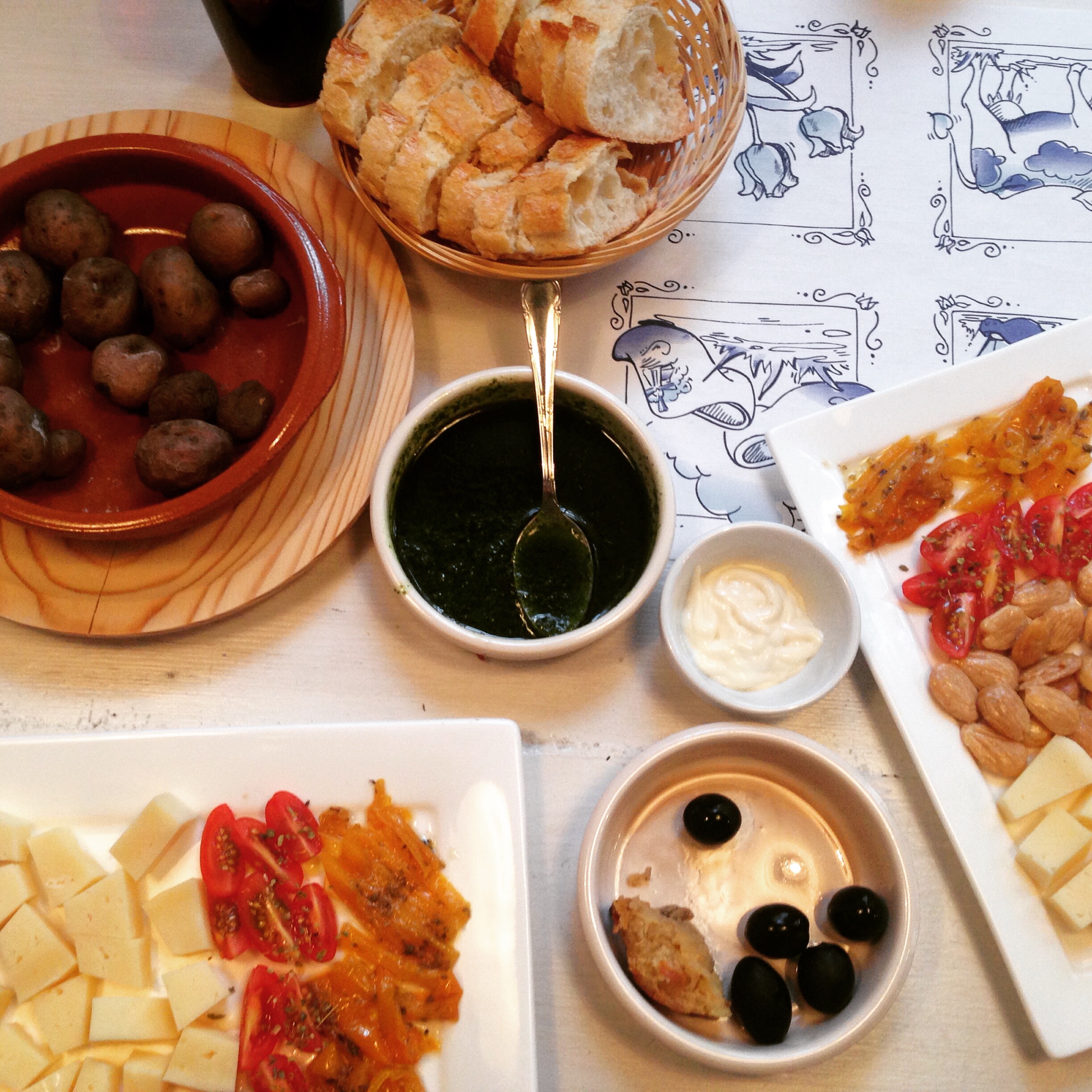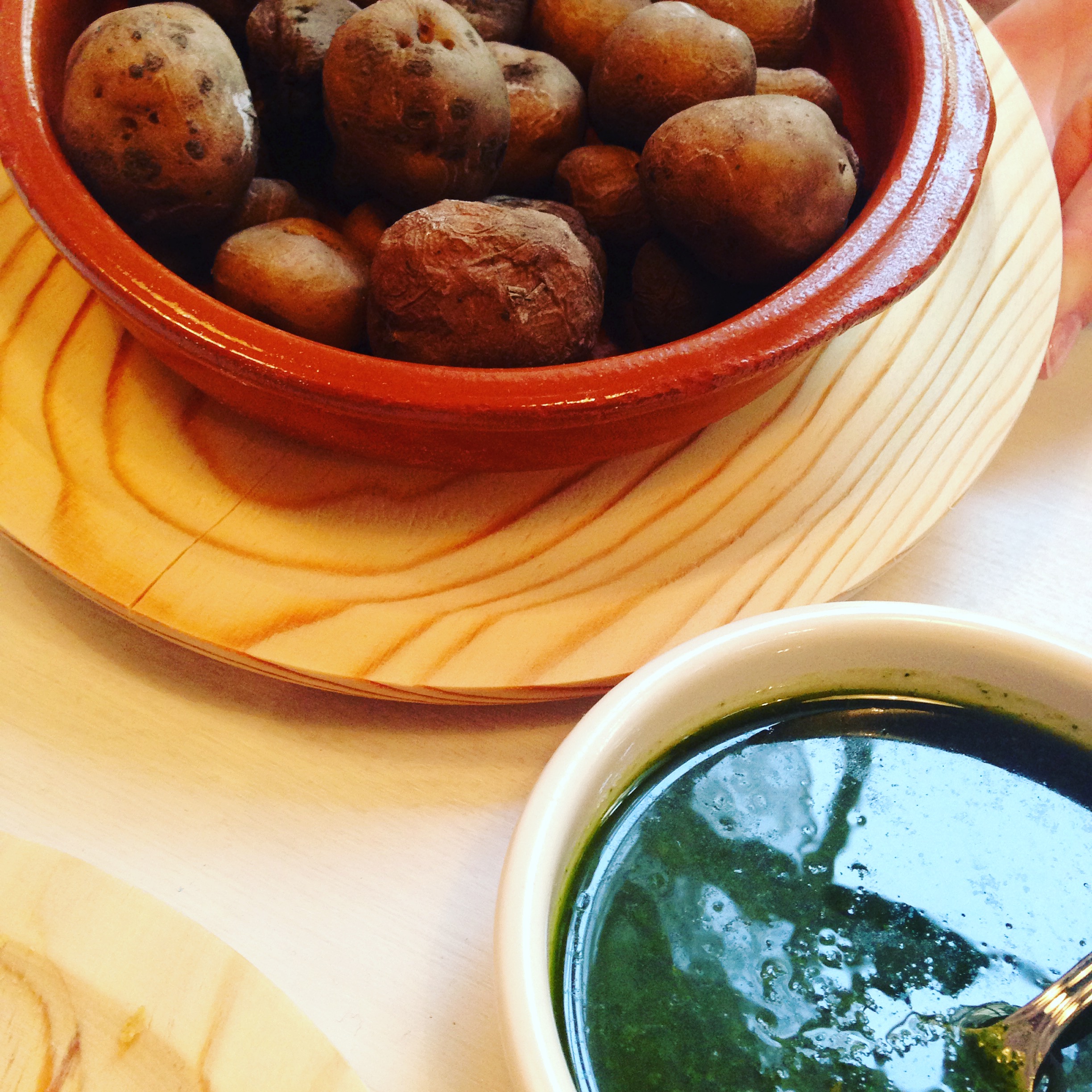 Het restaurantje dankt zijn naam aan een typische Canarische salsa gemaakt van koriander, olijfolie en knoflook: mojo. Wij aten deze met papas arrugadas (aardappeltjes in de schil), maar deze goddelijke salsa is ook heerlijk met brood of Manchego (kaas), of gewoon om met je vingers in te dippen 🙂 Verdere aanraders zijn de befaamde Jamón Iberico (ook wel Pata Negra), de gezoute amandelen, de croquetas de bakalao (kroketjes van kabeljauw) en natuurlijk de klassieke tortilla! Deze was ontzettend smaakvol. Volgens Jackie is de aardappel die je daarvoor gebruikt allesbepalend!