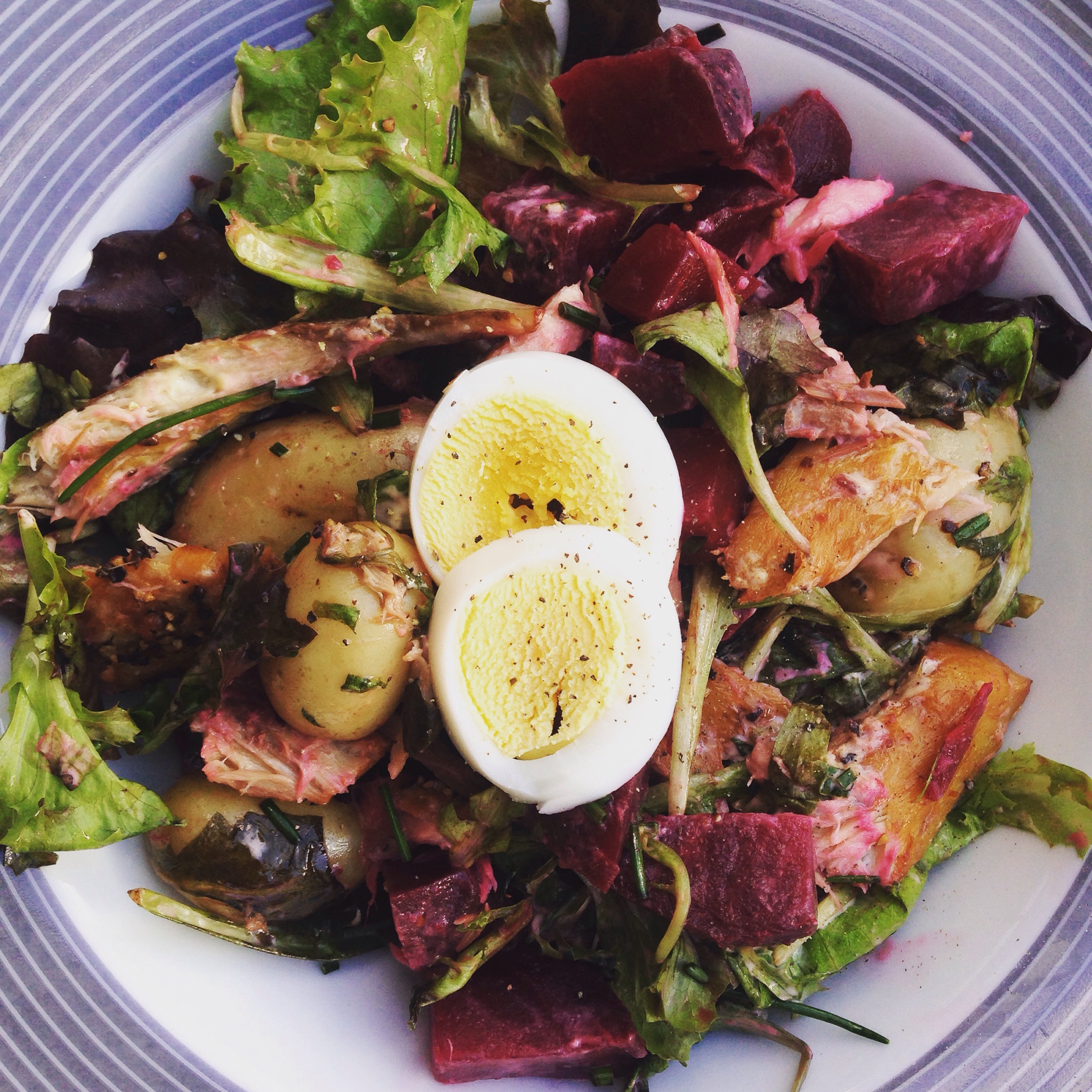 Makreel en bietjes zijn een gouden combinatie! Voor deze salade hoef je alleen maar de krieltjes te koken, dus hij staat binnen 20 minuten op tafel!