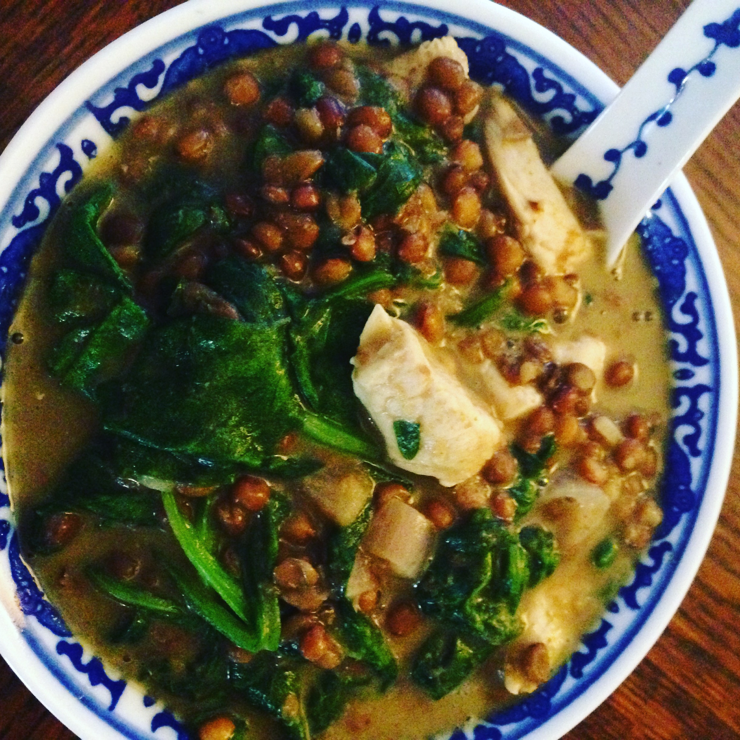 Deze curry is een gouwe ouwe! Staat binnen 20 minuten op tafel en is lekker voedzaam met linzen en spinazie. Heerlijk met nanbrood!