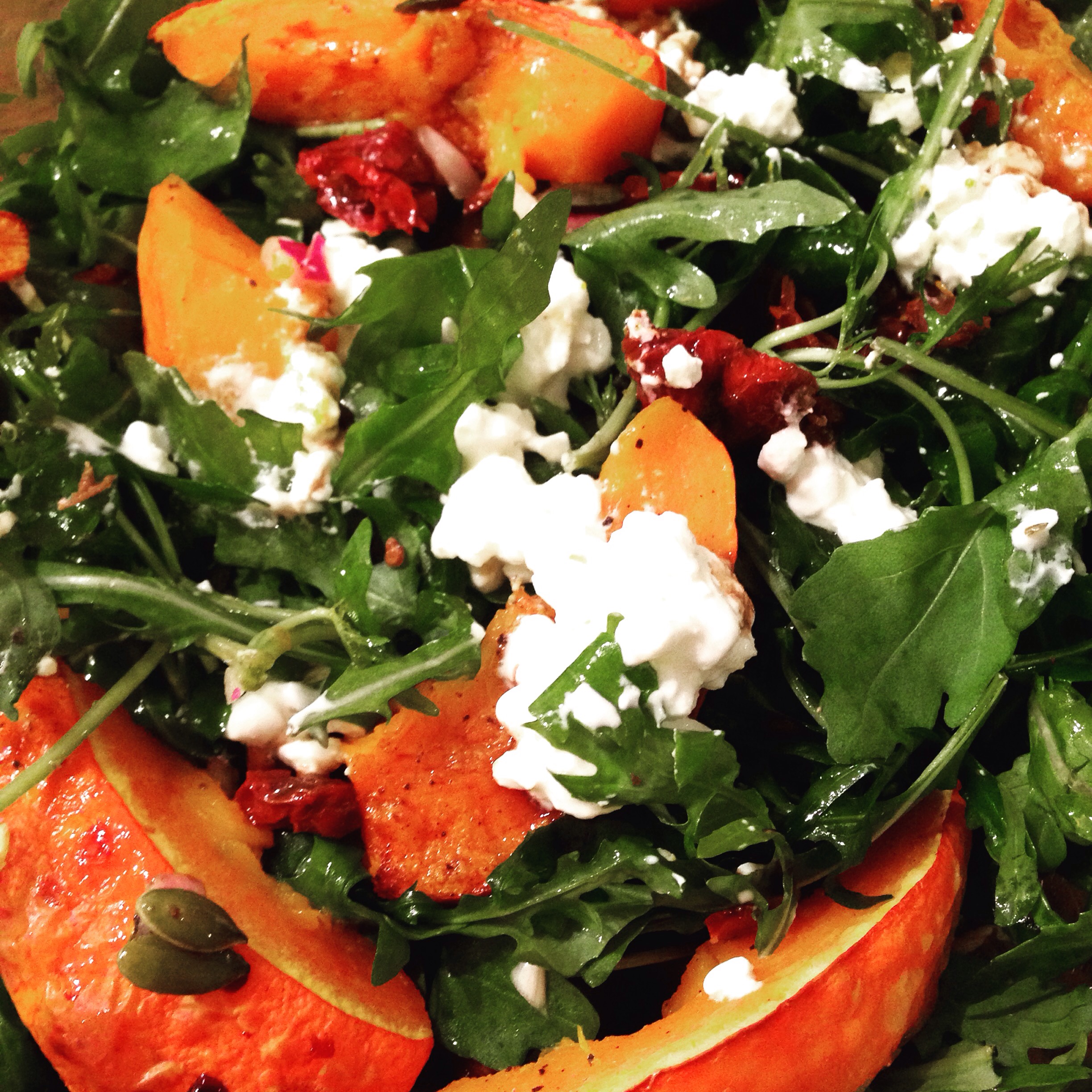 Ik denk dat de pompoen mijn meest favoriete ingrediënt allertijden. Ik vermoed dat ik tijdens het pompoenseizoen wel zo’n 2-3 pompoenen per maand eet. En deze supereasy salade is één van mijn favoriete gerechten. Lekker als lunch, of als bijgerecht bij een soep of bij rood vlees!