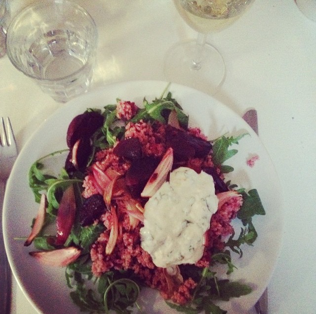 Dit is weer een snelle en lekkere lunchsalade! En het leuke aan koken met bietjes is natuurlijk de kleur die het oplevert 🙂